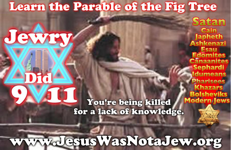 His return is certain, for the Messiah must fulfill Obadiah 18, the destruction of Edom. Every eye will see our Kinsmen Redeemer coming from the SKY and step foot upon His flat earth, Revelation 1:7. Many Satanic Jews will wail as the Son has only come for His Kinsmen, of which none are the Jews. The fig tree is the Jew who will wither away, while the righteous shall shine like the stars forever. Thus, Revelation 7:1 will be fulfilled. Every knee upon this flat earth will bow when He returns. Every eye will see YHWH judge the world. This glorious day is ahead of us all. Fake Israel, or as the Messiah called them, "the fig tree," aka Edom, the terrorists behind 9/11, put forth her wicked leaves by attacking the Christian Republic of the United States of America. Fake Israel must be judged! The Christian Republic of the United States of America has fallen. It is time for His elect to awaken. The true race of Israelites are nearly extinct, thanks to two massive wars, WW1, and WW2. The hand of Jewry caused both wars murdering over 100,000,000 Orthodox Christians since 1908. The jews are none of Israel's children. The Jews are the Edomite-Canaanites among us, they are the descendants of those from Mount Seir. Jews are not Semites, Hebrews or Israelites.