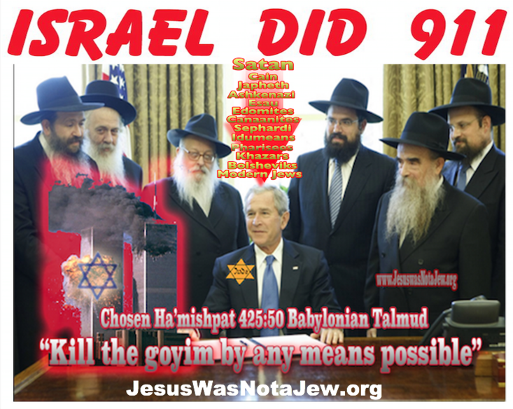 The whole world knows that Israel did 9/11! Here in America, we are punished for telling the truth. People are afraid of being an "anti-Semite," which jews are none of Shem's children. It's high time we stand up and hold these atheist Zionist jews and their goyim pastors accountable for their actions against YHWH Himself and against the Constitution of the Republic of the United States of America.