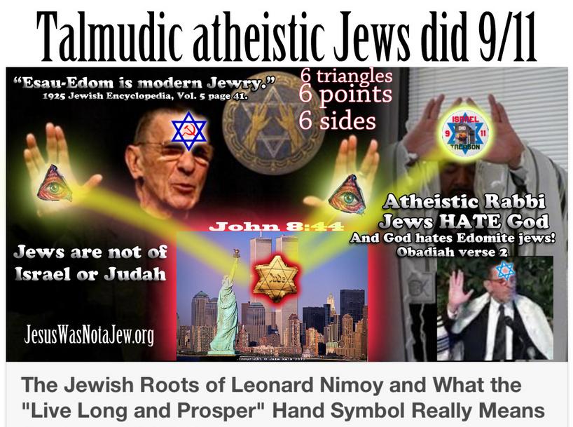 I risk my life by presenting this information to you. YHWH has set me free just as He promised in John 8:32.There is enough information on this homepage that will silence any Zionist. My goal is that you will be enlightened with heavenly knowledge, making you perfect in Messiah. I will prove that the "Edomites are hereafter none other than the Jews" (Antiquity of the Jews Xiii, Chapter 9, verse 1). YHWH's earth is flat and Israel is guilty of masterminding 911. I've literally been to hell and back because of this information. I'm not afraid. Your pastor is going to have a hard time rebutting this website, for it will expose the lies you're being fed in your Zionist house of filth, aka your church.